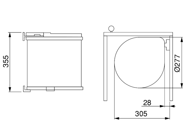 - głębokość kosza: (potrzebna miejsce w szafce): 355mm.