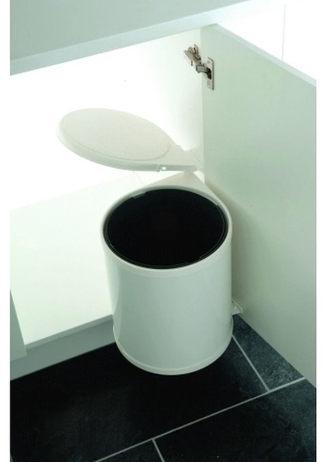 Otwierając szafkę, kosz wysuwa się automatycznie równocześnie otwierając pokrywę.