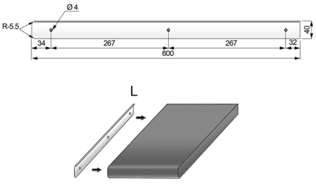 Listwa posiada otwory montażowe do przykręcenia jej do blatu.