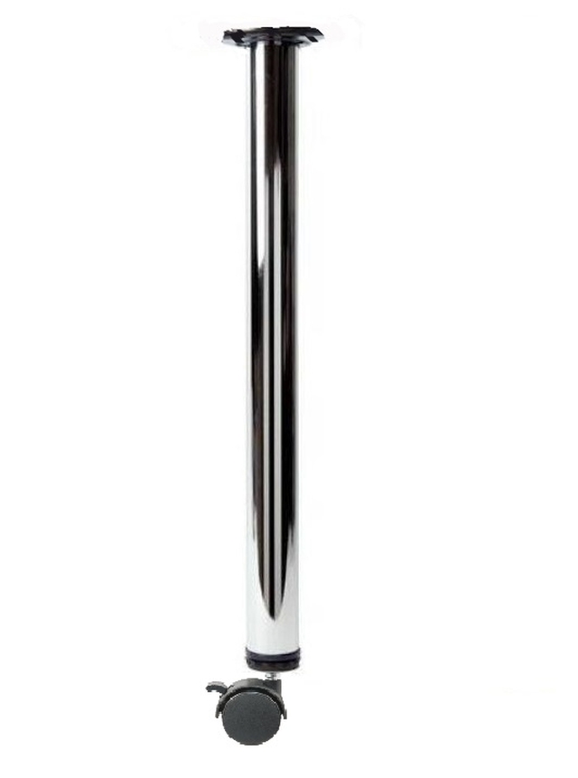 Noga chromowana z kółkiem oraz hamulcem.